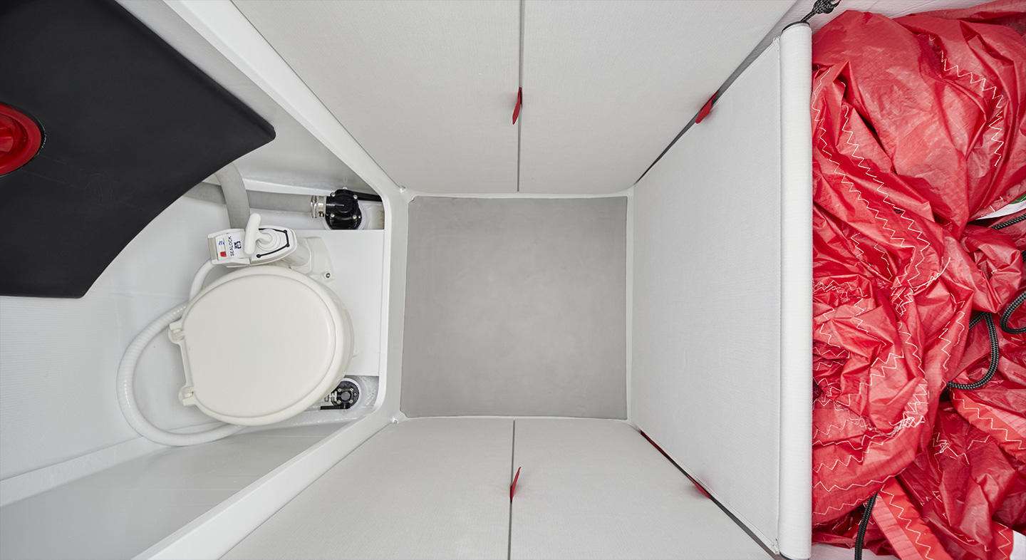 Die innovativen magnetischen Türen im Mittschiff trennen die Bugkabine, das WC oder die Segelkammer im Bug vom Rest des Bootes.