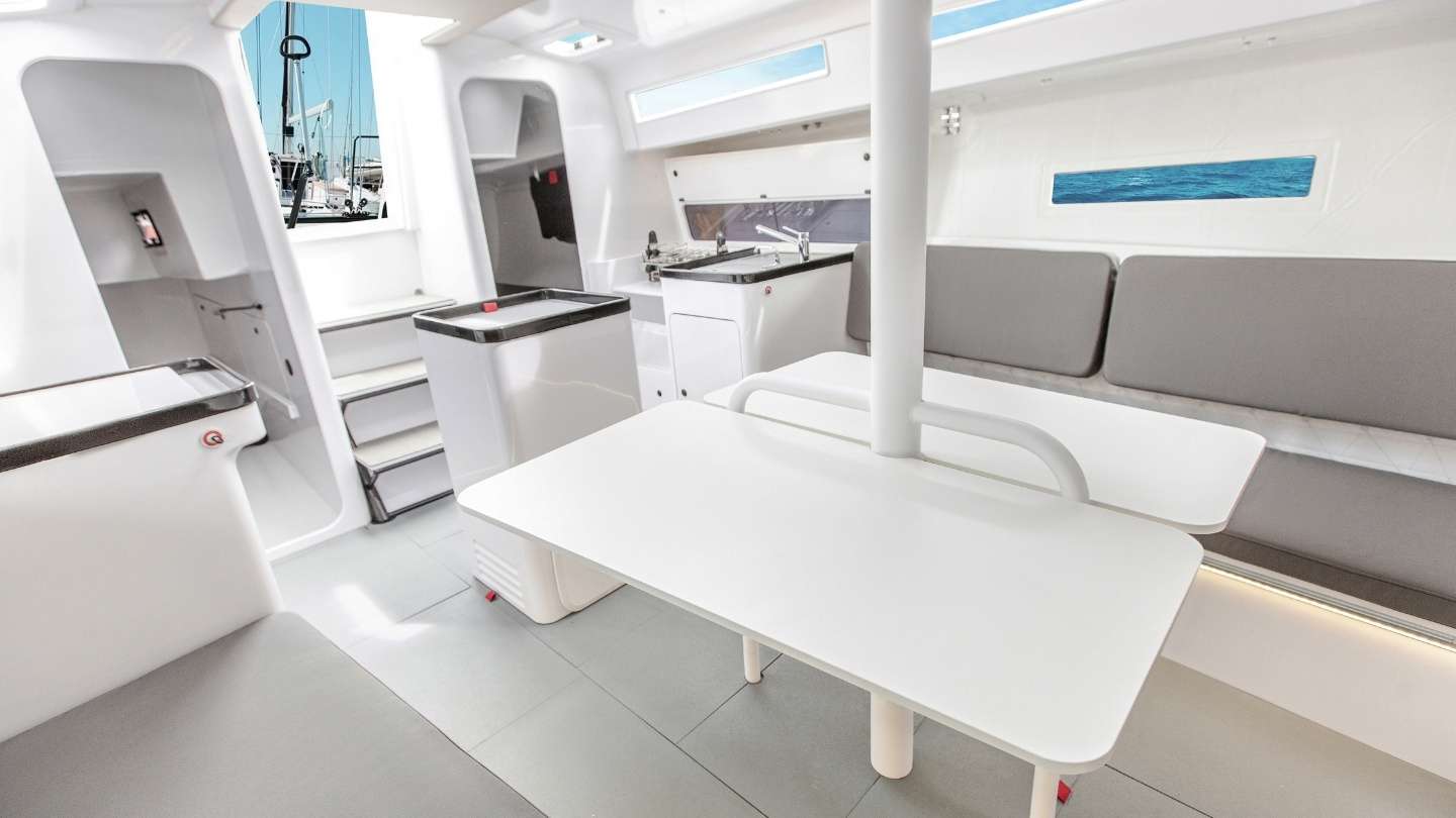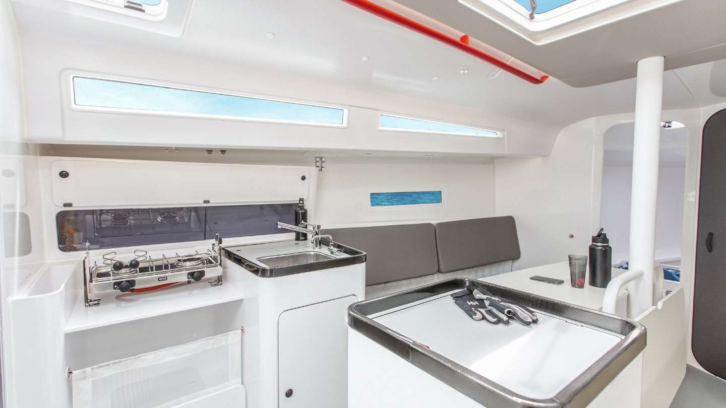 Die First 36 SE behält die gleiche Ausstattung wie die First 36 mit ihren drei Kabinen, ihrem Wohnzimmer und ihren großzügigen Wohnräumen, wurde aber für Regatten optimiert. Jedes Detail wurde für Segler neugestaltet, die Geschwindigkeit und Wettkampf bevorzugen, ohne Kompromisse beim Komfort an Bord einzugehen. Zu den wichtigsten Verbesserungen zählen ein Abstieg aus Carbon, Staufächer aus Carbon als Ersatz für das traditionelle Holz sowie abnehmbare Kleiderschränke aus Leinen anstelle der Holzmöbel. Anti-Roll-Tücher garantieren Sicherheit beim Schlafen während des Segelns. Die optimierten Stauflächen und andere intelligente Innovationen bieten ein perfektes Gleichgewicht zwischen Leistung und Funktionalität.