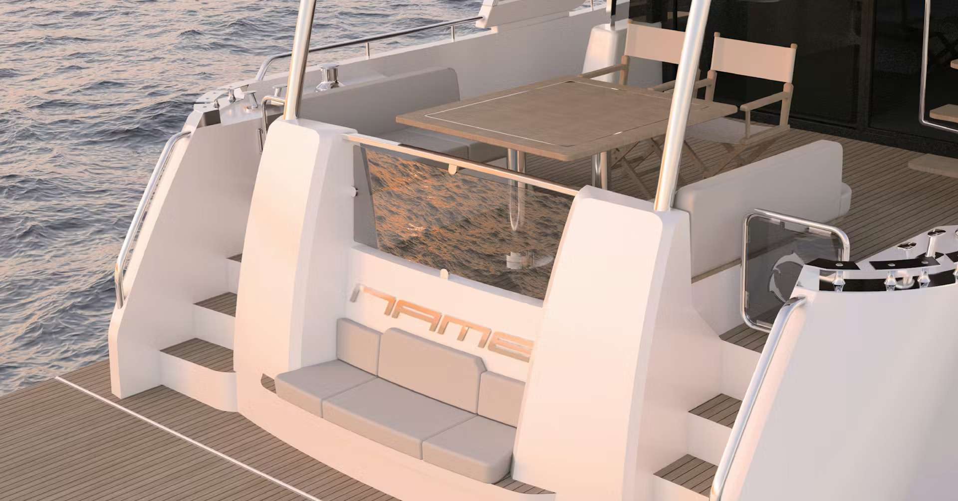 Genießen Sie die Sonne mit mehr Komfort denn je! Die integrierte Heckbank im Beach-Club-Bereich bringt Sommerstimmung auf die Badeplattform Ihres Greenline 58 Coupé.