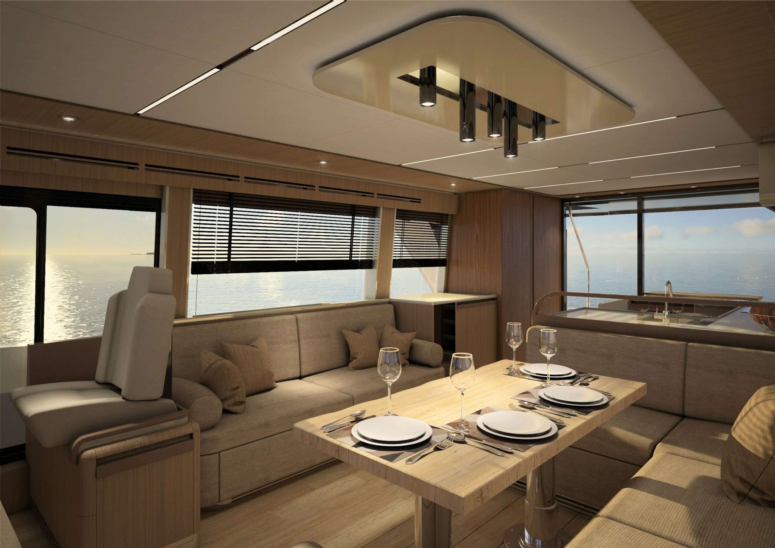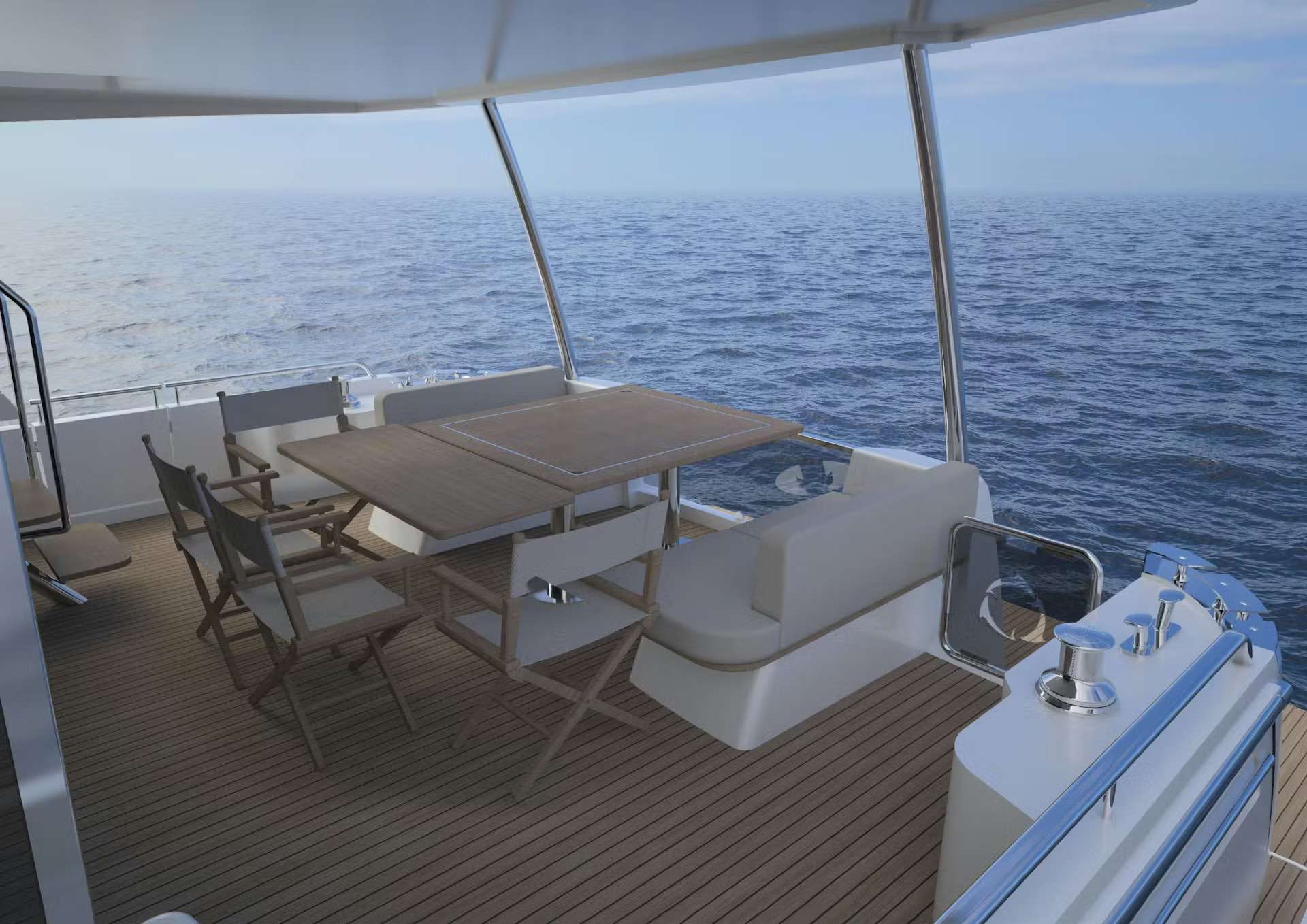 Genießen Sie Komfort mit Ihren Lieben an Bord der Greenline 58 Coupe. Die Anordnung der Cockpit-Lounge macht das Beisammensein noch angenehmer. Genießen Sie ein schönes Abendessen mit Blick auf das Wasser, egal wo Sie sitzen!